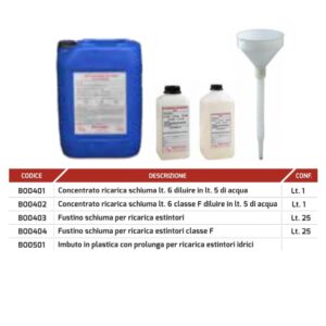 Liquidi schiumogeni per ricarica estintori idrici a schiuma....